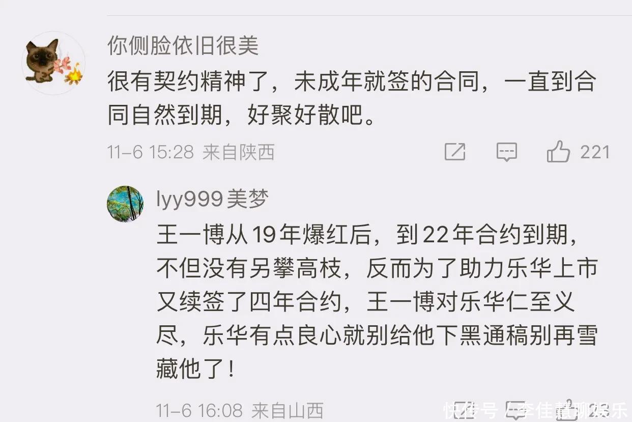 不少王一博的粉丝留言,王一博仁至义尽,大家应该好聚好散,乐华应该大方放手!明星到期不续约的事情比比皆是,也没有什么大惊小怪!