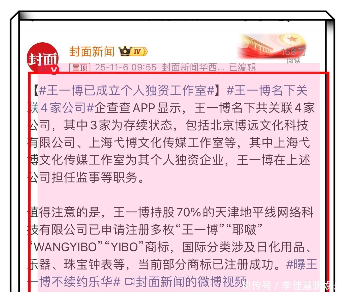 今天有媒体报道称王一博合同到期将不再与乐华续约,一时间引发全网热议,随后有媒体报道王一博已经成龙和工作室,不少王一博的粉丝在评论替王一博开心!