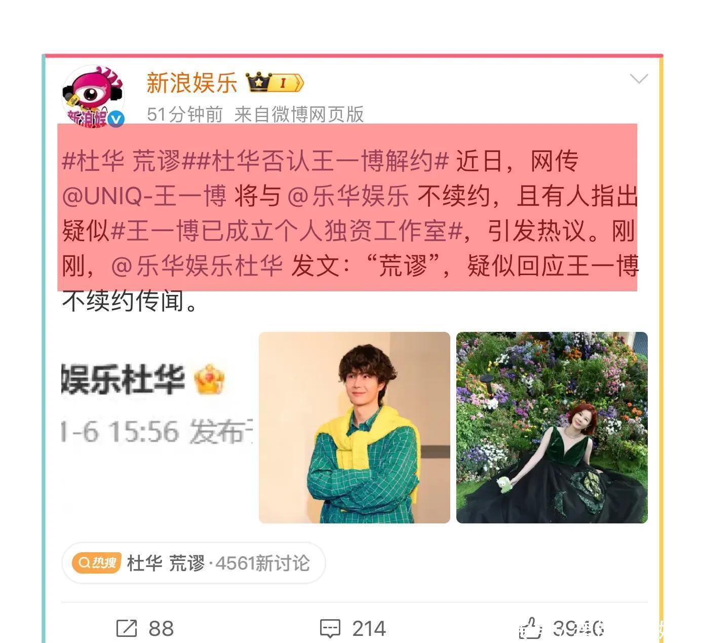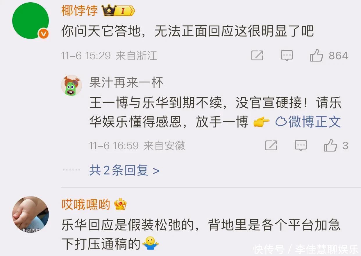 刚刚乐华在网上发了两个字“荒谬”,有网友说月华这是在否认王一博不续约的事情,也有网友说乐华这是破防了,没有正面回应,应该就是事实,而且网友纠正了一下,王一博是到期不续约,并不是解约了!